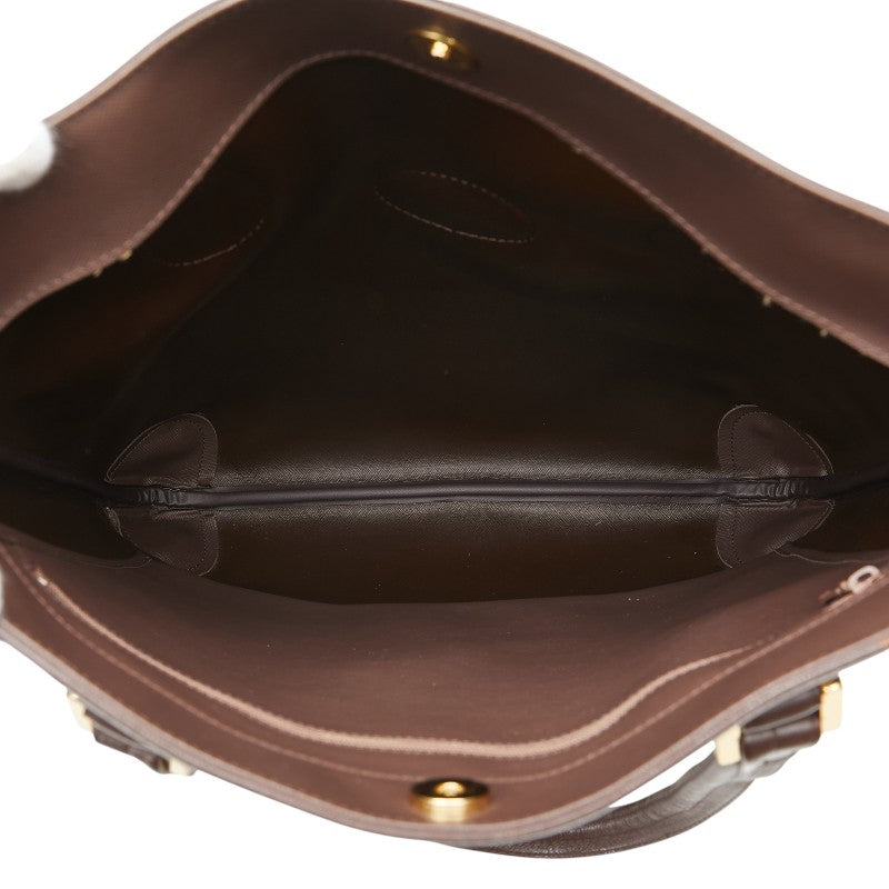 外側⇒スレ・薄汚れ 底面⇒角スレ ハンドル⇒スレ 金具⇒キズ 内側⇒亀裂・若干のスレ・汚れ |