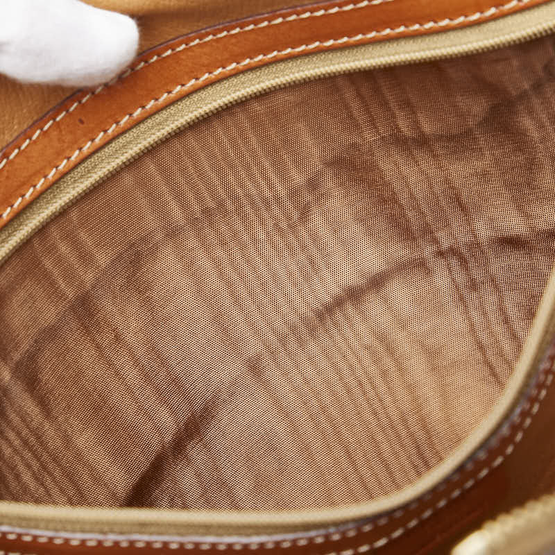 外側⇒キズ・シミ・若干の型崩れ サイド⇒スレ・ひび 底面⇒角スレ・汚れ ハンドル⇒スレ・コバはがれ ショルダー⇒スレ・若干のコバはがれ 金具⇒スレ・変色 開閉口⇒スレ・薄汚れ 内側⇒薄汚れ・ファスナーポケット内側に全体的にシミ |