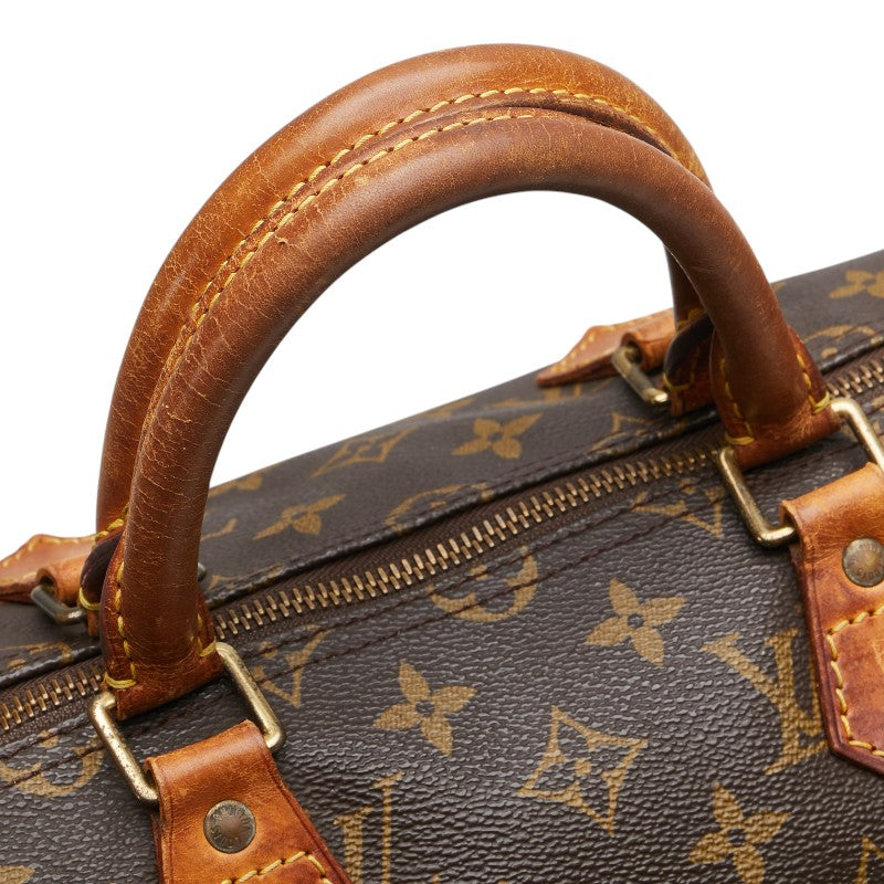 外側⇒たたみジワ サイド⇒レザーとパイピングにスレ・キズ・シミ・黒ズミ・汚れ・欠損 ハンドル⇒スレ・キズ・シミ・黒ズミ・汚れ・ひび割れ 金具⇒変色・メッキはがれ 開閉口⇒ファスナー持ち手に欠損 内側⇒ペン跡・汚れ |