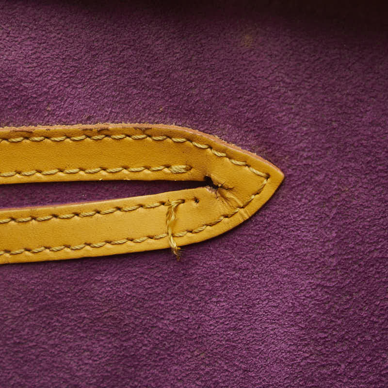 外側⇒スレ・薄汚れ サイド⇒薄汚れ 底面⇒角スレ・薄汚れ ハンドル⇒薄汚れ 金具⇒スレ・メッキはがれ・変色 開閉口⇒薄汚れ 内側⇒糸切れ・ポケットサイド部分の亀裂・ポケット内のペン跡・薄汚れ |
