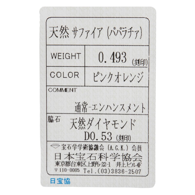 | 中石石目: | パパラチアサファイア0.493ct |